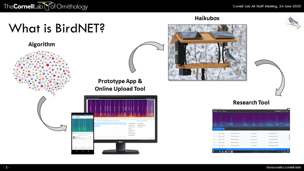 My collaborator Dr. Stefan Kahl and I gave a brief presentation about the artificial intelligence tool BirdNET at a recent Lab of O. team meeting. We focus on the BirdNET app, but the underlying algorithm is what I’ll be using to study the Sierra Nevada bird community.