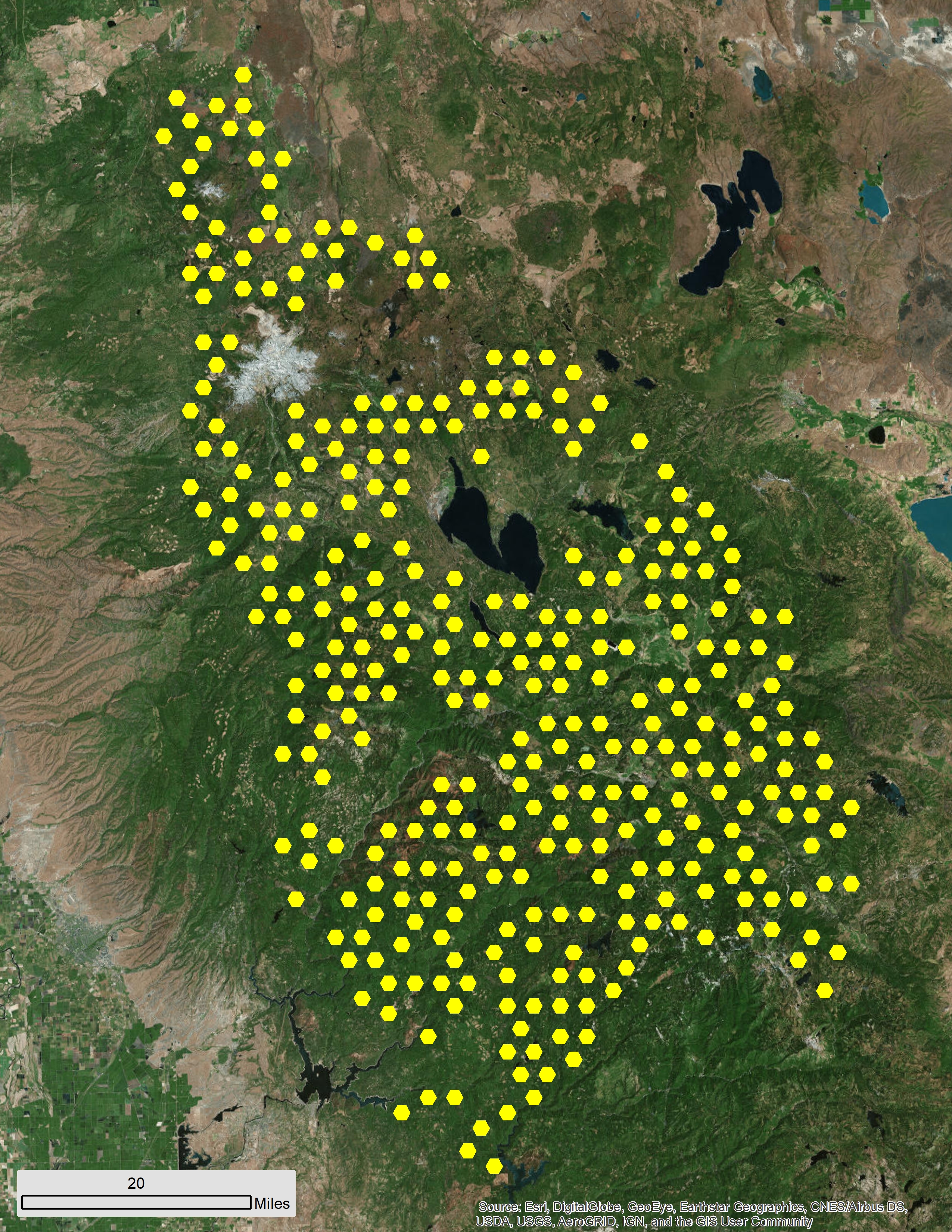 In the summer of 2021, survey coverage was expanded to the entire Sierra Nevada. Seven National Forests, three National Parks, and over 25,000 square kilometers.